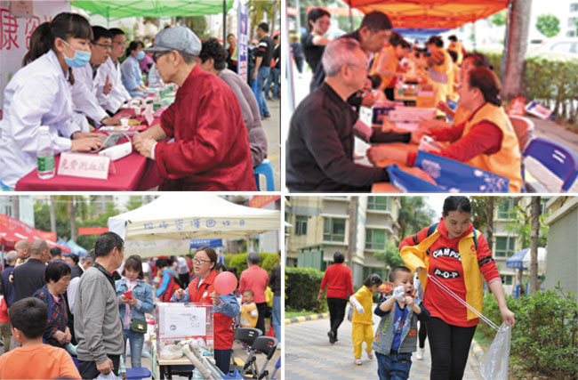 環境保護類服務項目也得到了大家的積極響應。社區義工隊、豐潤幼兒園、管理處攜手開展清潔家園活動,大手拉小手,共同撿拾垃圾,為社區營造干凈整潔的環境。社區居民紛紛捐贈舊書舊衣物到龍華區零廢棄促進會的資源回收攤位,把家里的過期藥品送到海王星辰的過期藥品攤位回收點,共同為環保做貢獻。