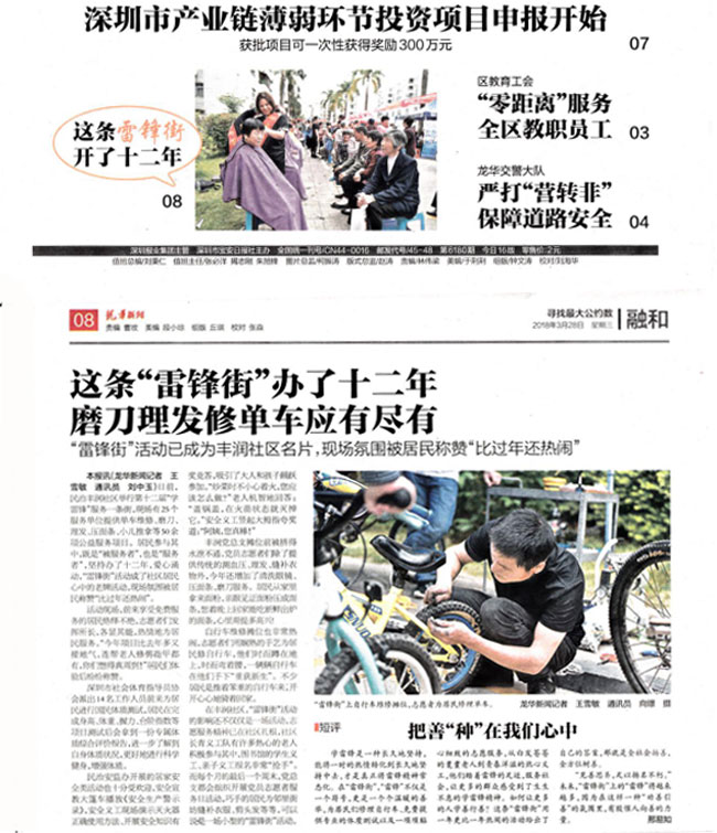媒體刊登報道:2018年3月28日 寶安日報第C01版——龍華新聞