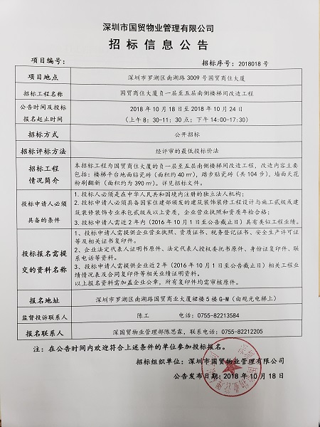 上一篇:深國貿(mào)物業(yè)公司員工工作服(冬裝)招標公告