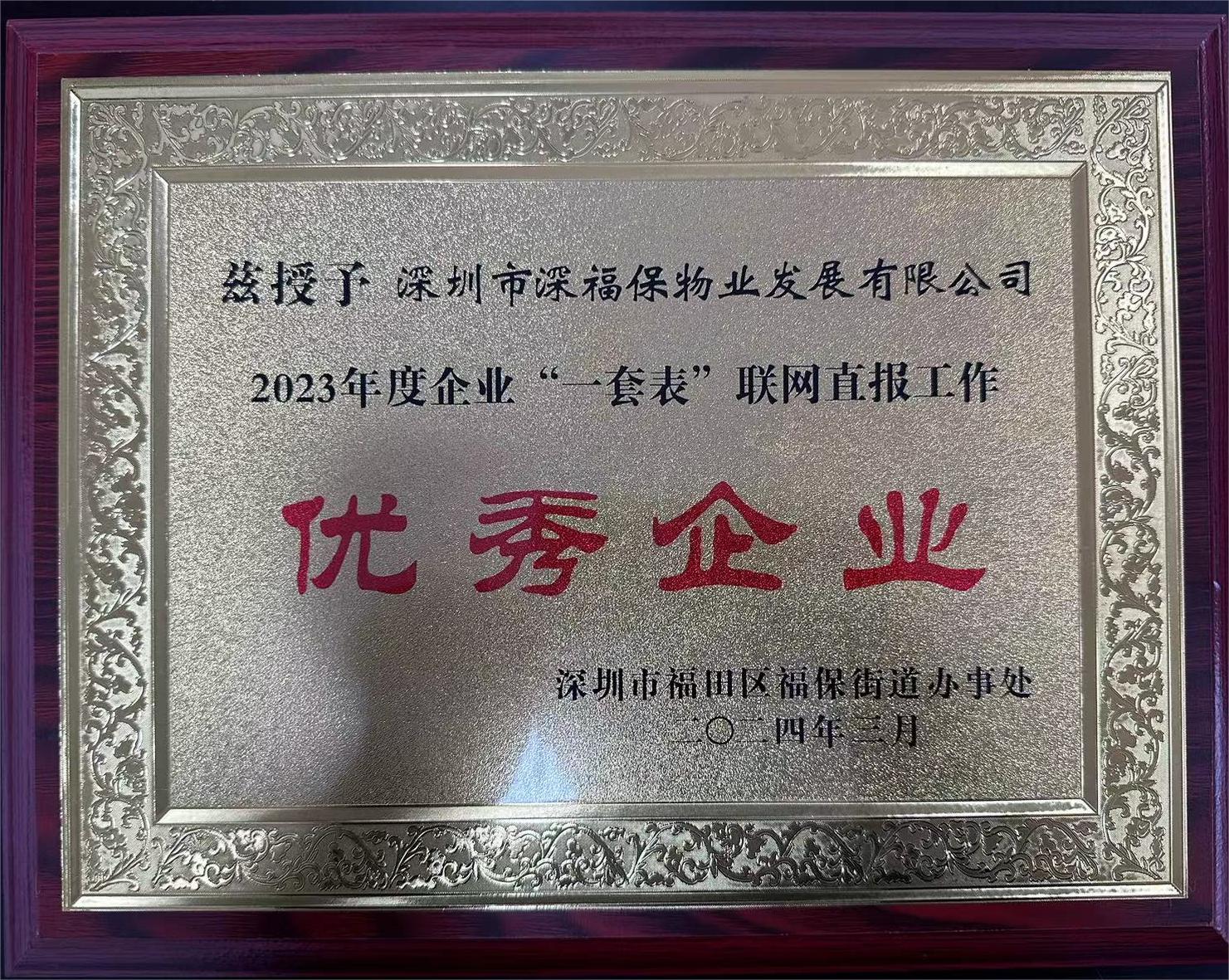 國貿福保物業榮獲福保街道2023年度企業“一套表”聯網直報工作“優秀企業”稱號