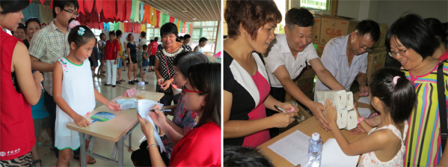當天天氣炎熱,但活動現(xiàn)場人們的熱情更高,工作人員顧不上滿頭大汗,熱情、認真地核對答案和發(fā)放獎品,猜謎者興奮地領(lǐng)取獎品,處處可見樂呵呵的笑臉,現(xiàn)場洋溢著喜慶、和諧的節(jié)日氣氛。