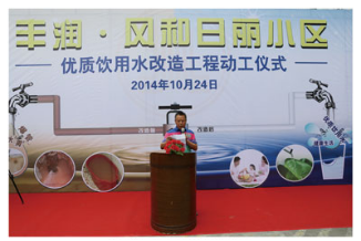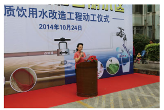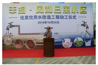 2014年10月24日上午,風和日麗小區2754戶業主敲鑼打鼓,喜氣洋洋迎來了期盼已久的“豐潤·風和日麗小區優質飲用水工程動工儀式”。龍華新區城市建設局、深圳市深水龍華水務有限公司、深圳市華茂建設有限公司、豐潤社區黨支部、豐潤社區居委會、風和日麗業主委員會等社區組織和領導出席了動工儀式。同時深圳電視臺第一現場、南方都市報、深圳商報、寶安電視臺、寶安日報共五家媒體對儀式進行了報道。 豐潤風和日麗小區坐落于龍華新區人民南路。始建于1992年,分四期開發建成,共52棟建筑,屬于多層住宅小區。小區內管網已嚴重老化,導致經常出現水質變黃、爆管停水和水壓不足等問題,居民健康長期得不到保障。豐潤風和日麗小區作為龍華新區第一批優質飲用水改造工程項目,預計將于明年年初完工,將惠及2754戶居民近萬人。 儀式簡單而隆重,9:20儀式正式開始,由風和日麗管理處主任趙偉先生主持。龍華新區城市建設局水務科李曉華科長先生首先介紹了《深圳市優質飲用水入戶工程》具體內容,龍華新區管委會在充分聽取民意的基礎上,決定免除用戶本需承擔的每戶200元的改造費用,改造費用由市、新區兩級財政共同承擔解決。 深圳市龍華新區民治街道風和日麗業主委員會主任黃方倫先生敘述了小區管網老化,水黃、爆管和水壓不足一直困擾2754戶居民。感謝政府的惠民工程,同時,肯定了小區物管國貿物業管理有限公司在過往的工作中作出的努力和貢獻。 豐潤社區黨支部書記付敏女士代表社區各群團組織衷心地感謝黨和政府對我們社區居民的關愛和關懷!感謝國貿物業管理公司多年來為此事所做的努力,對此改造工程,也將積極支持和配合工程的施工,發動群眾積極做好宣傳引導、解釋協調工作。 深水龍華水務有限公司副總經理李曉如先生強調改造過程需要全體居民朋友配合,施工單位文明施工、保質按期完成工程。 深圳市華茂建設有限公司副總經理鄭鋒濤先生保證文明施工,嚴格按照規范施工,確保質量關。 深圳市國貿物業管理有限公司副總經理王文浩先生首先感謝了新區政府、水務等各界單位和人士的支持與幫助。敘述了小區管網改造工程申報的艱辛歷程,最終小區管網改造工程得以實現實屬不易,國貿物業為此付出了巨大的努力。最后表態國貿物業將全力配合本次施工,促使工程順利完成。 最后,在龍華新區城市建設局水務科科長李曉華先生的一聲令下,禮炮聲、鑼鼓聲、小區居民的掌聲、歡笑聲中,迎來了30幾名穿著規范的施工隊伍。