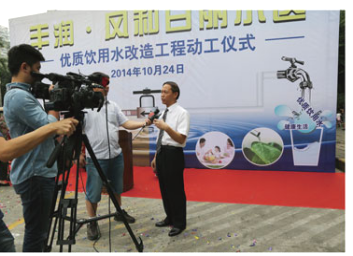2.小區70多歲的姬先生告訴記者說:“等這一天已經等了很久了。” 3.小區康先生告訴記者說:“小區頻繁爆管停水、水黃等問題這次終于可以解決了,感謝這一惠民工程。” 5.國貿物業管理有限公司副總經理王文浩接受記者訪問的時候說:小區管網問題困擾了2754戶居民,也困擾了管理公司7年之久。為了解決我們豐潤·風和日麗小區管網問題,國貿物業所做的工作可以用“排除艱辛,永不放棄”來形容。從2010年開始,國貿物業風和日麗管理處先后去函給龍華自來水公司、當時的寶安區房屋共用設施維修基金管理中心、深圳市物業專項維修資金管理中心,尋求解決途徑。深圳市自來水公司的回函是:根據《物權法》第七十二條規定,小區管網屬全體業主共有,理應由全體業主負責。深圳市物業專項維修資金管理中心的回函是:根據《廣東省物業管理條例》第六十一條第二款規定:“物業管理區域內依法應當由供水、供電、供氣、供熱、通訊、有線電視等單位承擔的相關管線和設施設備的維修、養護費用,不得從住宅專項維修資金中列支。”2012年3月26日,寶安區兼龍華新區書記魯毅書記前來社區調研,國貿物業聯合社區向魯毅書記反應了管網水質等問題。2012年3月29日,國貿物業聯合社區組織共同向民治辦事處報告小區管網水質等問題,回函表示無政策支持。此外,國貿物業向開發商深物業集團公司匯報,提出一些解決方案,但終因資金缺口太大,未能得以解決。在此過程中,國貿物業也曾多次組織管網局部修繕,對部分銹蝕嚴重的管道和閥門進行更換等。在2011年7月,國貿物業專門從廣州聘請專業的管道測漏公司對小區管網進行全面測漏并修補,共耗資約60萬元,減緩水黃的嚴重性,降低了爆管搶修給居民帶來的不便,但杯水車薪,仍然無法解決根本問題。 6.小區管理處主任趙偉回憶道:“記得前年春節,大過年的卻爆管了,為了讓居民過好年,我們只能在除夕夜搶修,那時又冷又累。” 7.豐潤風和日麗小區坐落于龍華新區人民南路。始建于1992年,分四期開發建成,共52棟建筑,屬于多層住宅小區。小區內管網已嚴重老化,導致經常出現水質變黃、爆管停水和水壓不足等問題,居民健康長期得不到保障。豐潤風和日麗小區作為龍華新區第一批優質飲用水改造工程項目,預計將于明年年初完工,將惠及2754戶居民近萬人。